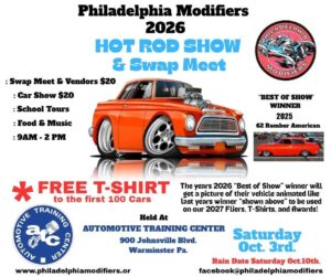 The Philadelphia Modifiers would like to thank everyone who made both our events a success in 2025. We will be updating the Show dates for 2026 as soon as they become available. See you all in 2026.
